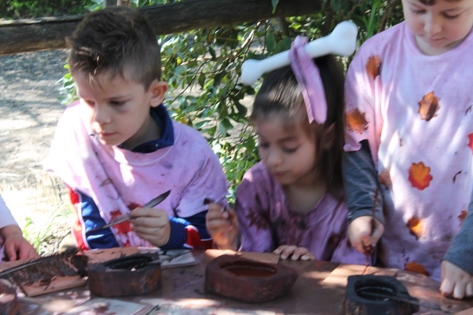 Allí nos recibieron unos maestros, dos de los cuales como nosotros iban vestidos de la prehistoria, tuvimos que esperar al otro cole que vino junto a nosotros, los niños y niñas de 4 años del CEIP Calderón de la Barca de Sevilla, tan solo compartimos espacio, porque solo entre nosotros dos nos mezclamos al menos en la primera parte de la mañana.